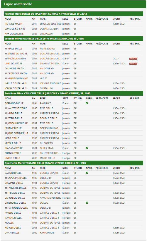 SOUCHE EXCEPTIONNELLE : PLUS DE 57 PRODUITS INDICES EN LIGNEE MATERNELLE AU DESSUS DE 140 DONT 10 INDICES AU DESSUS DE 160